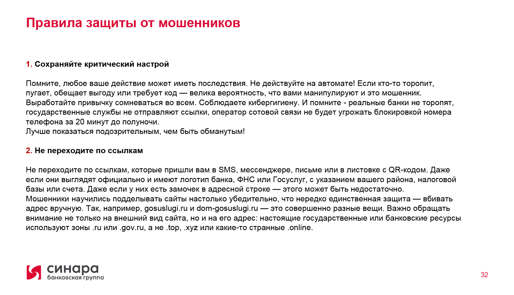 Всегда сверяйте адрес интернет-ресурса или почты с доменными именами официальных сайтов организаций, а номера телефонов проверяйте в официальных справочниках.
