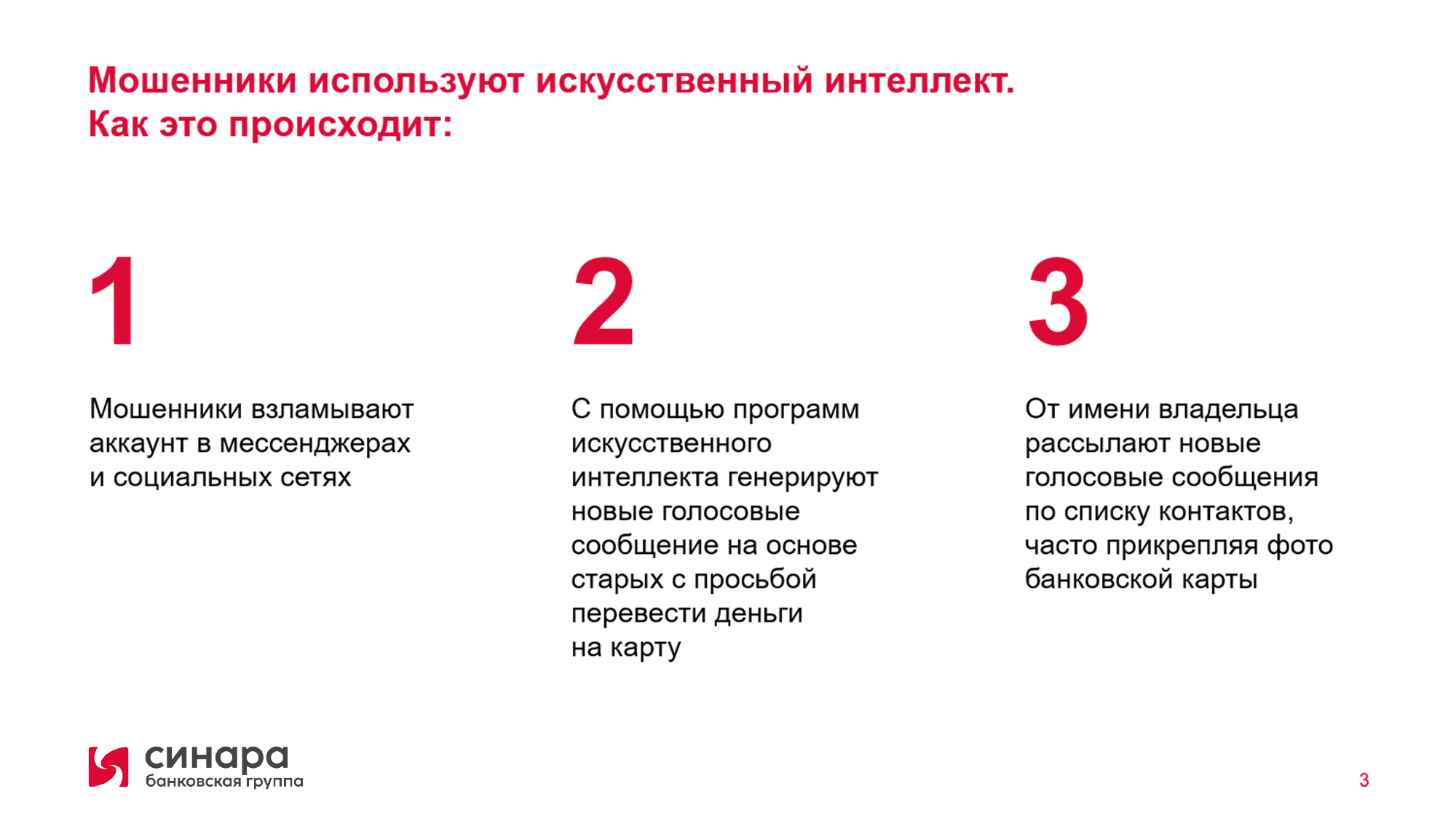 Прекратите телефонный разговор, если вам позвонили и представились сотрудником Банка, силовых ведомств и просят сказать номер карты, пароли, коды из СМС, установить программу на телефон или компьютер, перевести деньги на безопасный счет.