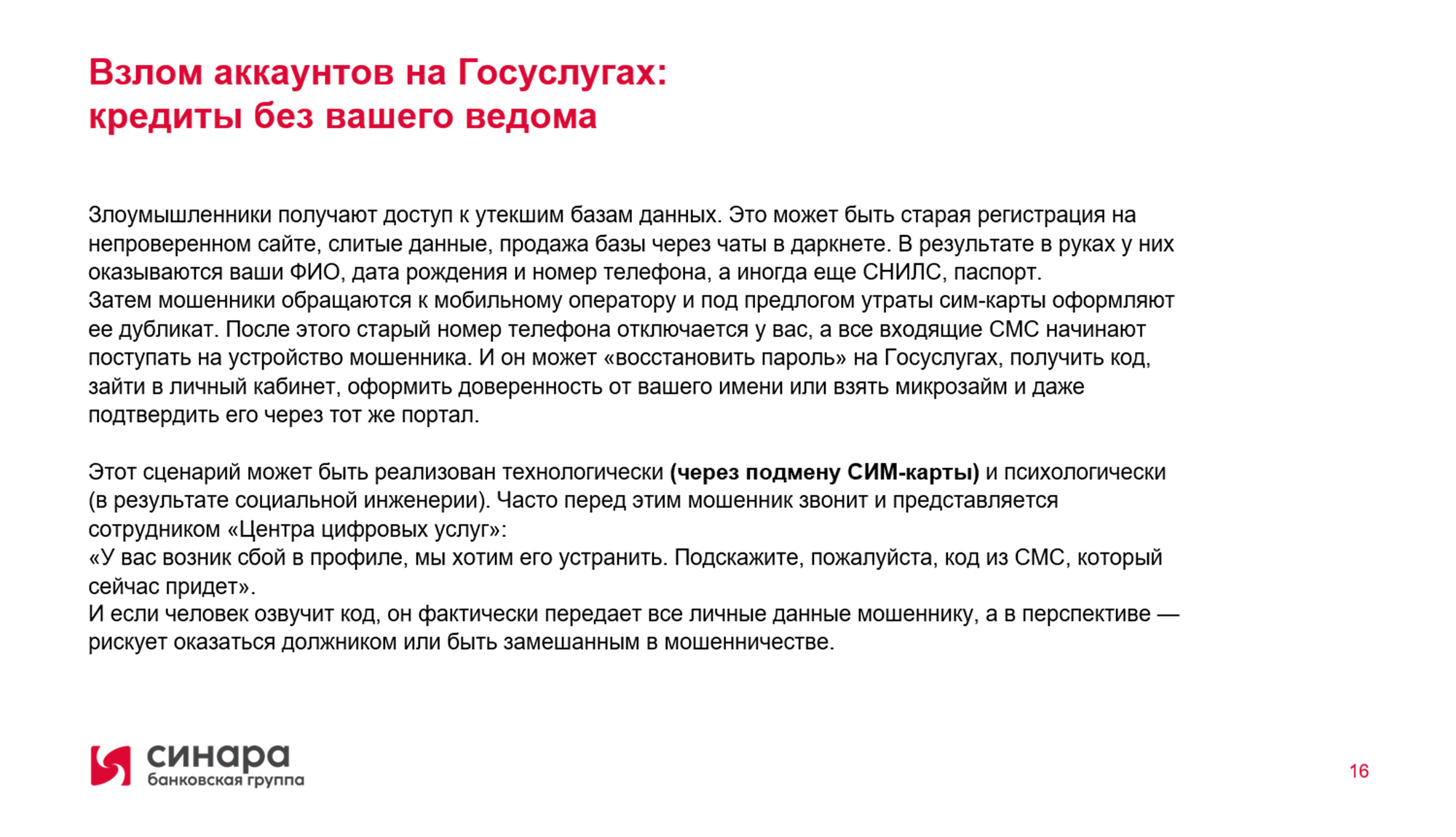 Никому и никогда не сообщайте коды подтверждения из СМС-сообщений.